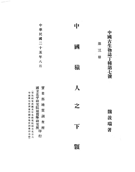 | 网盘路径:/时光图书馆珍藏系列/书籍文件/老图书/《中国猿人之下颚》电子版合集.db | ||