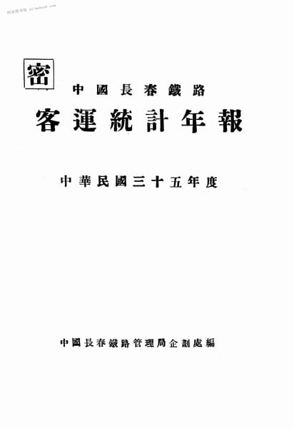 | 网盘路径:/时光图书馆珍藏系列/书籍文件/老图书/《中国长春铁路客运统计年报:中华民国三十五年度》电子版合集.db | ||