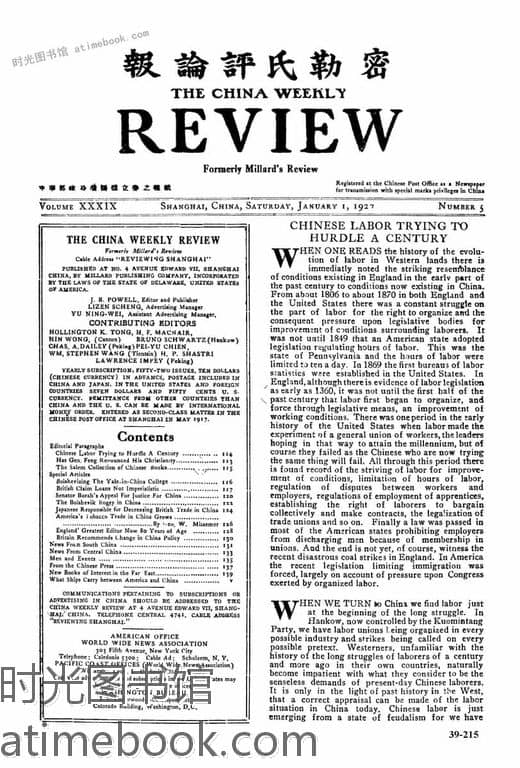 书籍名称:《密勒氏评论报》(上海)1927-1928年合集