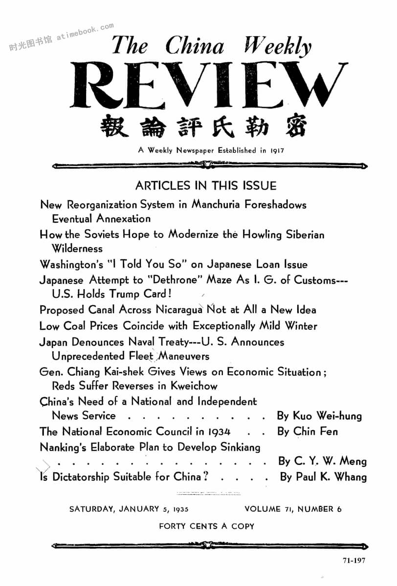 书籍名称:《密勒氏评论报》(上海)1935-1936年合集