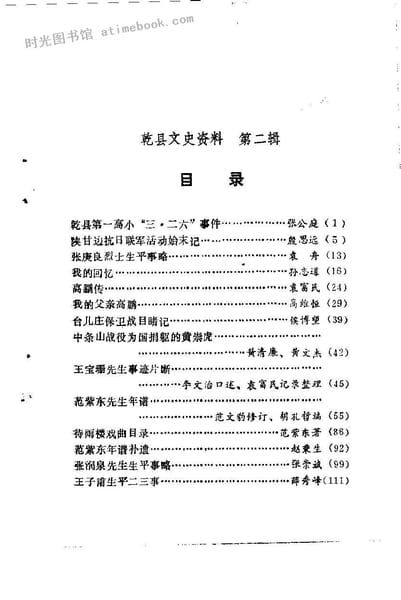 | 网盘路径:/时光图书馆珍藏系列/书籍文件/老图书/《乾县文史资料_第2辑》电子版合集.db | ||