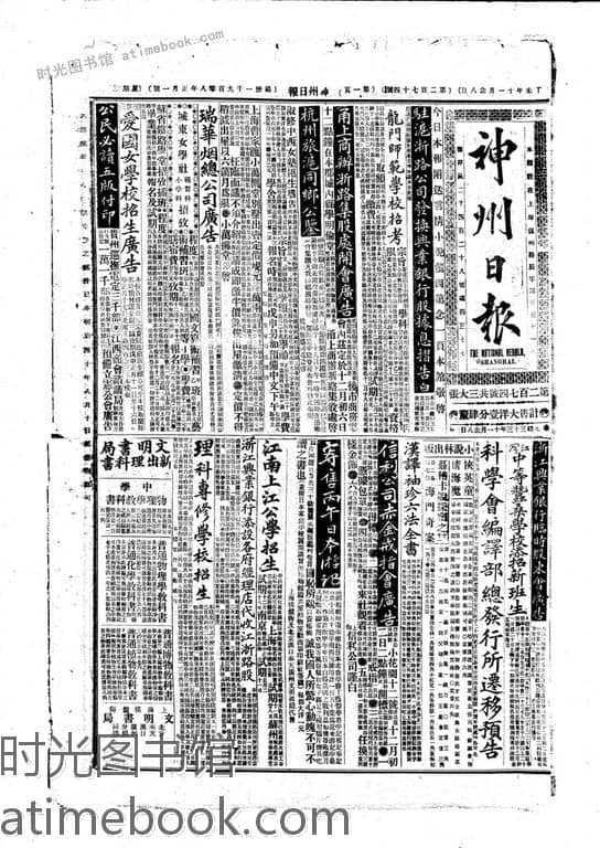 书籍名称:《神州日报》(上海)1908年合集上半年