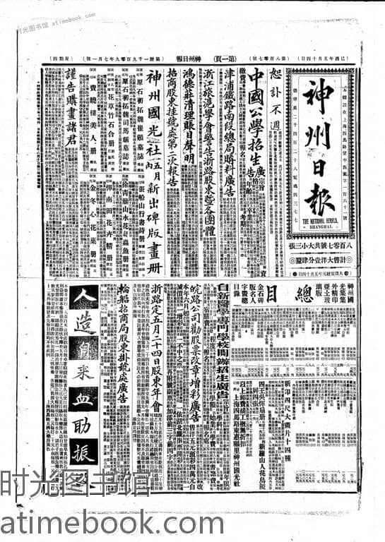 书籍名称:《神州日报》(上海)1909年合集下半年