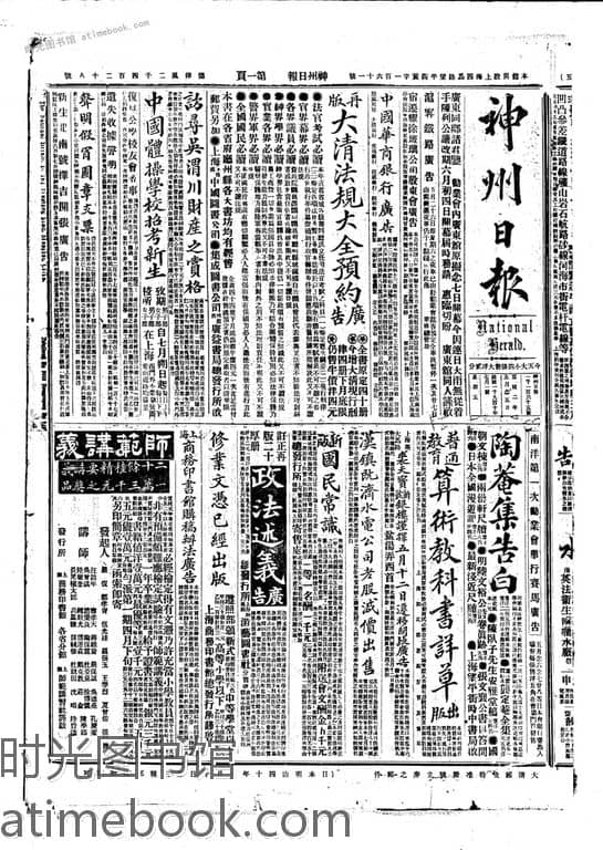 书籍名称:《神州日报》(上海)1910年合集下半年