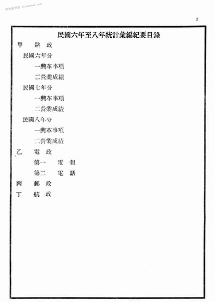 | 网盘路径:/时光图书馆珍藏系列/书籍文件/老图书/《交通部统计图表汇编:中华民国六年至八年》电子版合集.db | ||