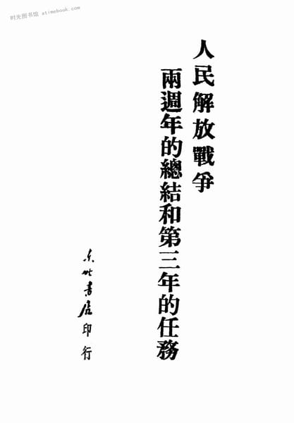 | 网盘路径:/时光图书馆珍藏系列/书籍文件/老图书/《人民解放战争两周年的总结和第三年的任务》电子版合集.db | ||