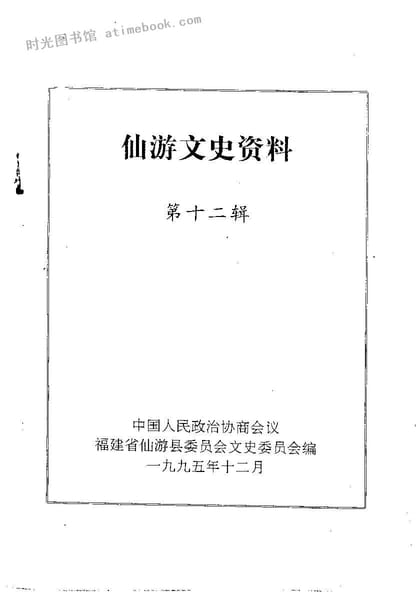 | 网盘路径:/时光图书馆珍藏系列/书籍文件/老图书/《仙游文史资料_第12辑》电子版合集.db | ||