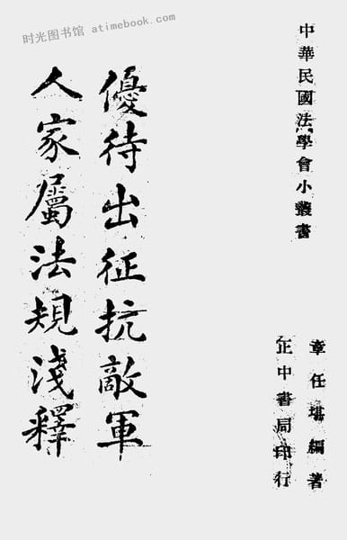 | 网盘路径:/时光图书馆珍藏系列/书籍文件/老图书/《优待出征抗敌军人家属法规浅释》电子版合集.db | ||