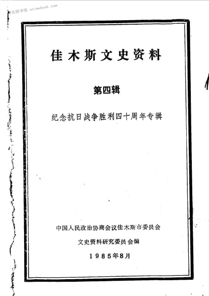 | 网盘路径:/时光图书馆珍藏系列/书籍文件/老图书/《佳木斯文史资料_第4辑_纪念抗日战争胜利40周年专辑》电子版合集.db | ||