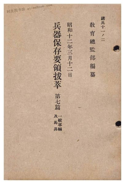 | 网盘路径:/时光图书馆珍藏系列/书籍文件/老图书/《兵器保存要領拔萃第七篇一般車兩及馬具》电子版合集.db | ||