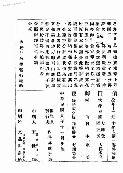 | 网盘路径:/时光图书馆珍藏系列/书籍文件/老图书/《内务公报_第八十五期》电子版合集.db | ||