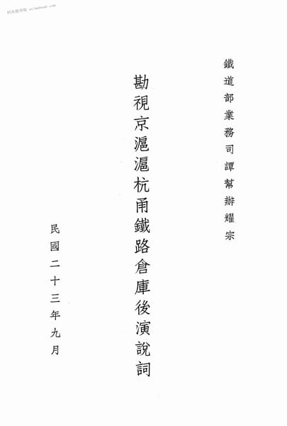 | 网盘路径:/时光图书馆珍藏系列/书籍文件/老图书/《勘视京沪沪杭甬铁路仓库后演说词》电子版合集.db | ||