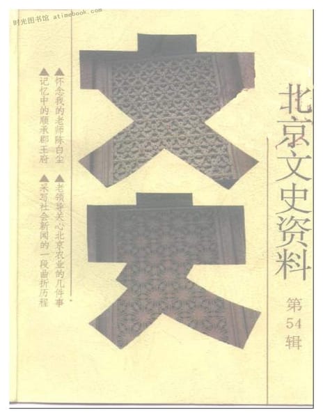 | 网盘路径:/时光图书馆珍藏系列/书籍文件/老图书/《北京文史资料_第54辑》电子版合集.db | ||