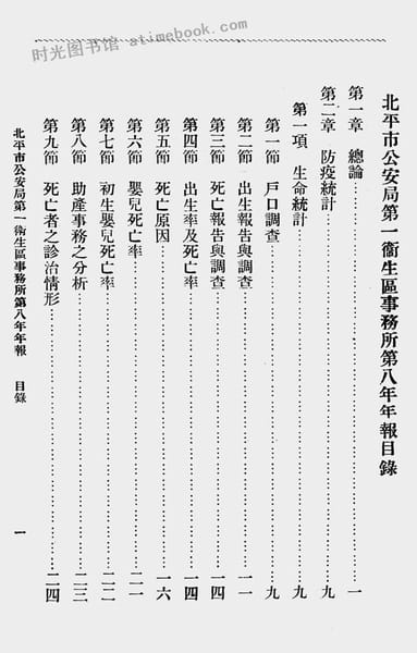| 网盘路径:/时光图书馆珍藏系列/书籍文件/老图书/《北平市公安局第一卫生区事务所第八年年报(中华民国二十二年第八期)》电子版合集.db | ||