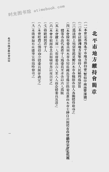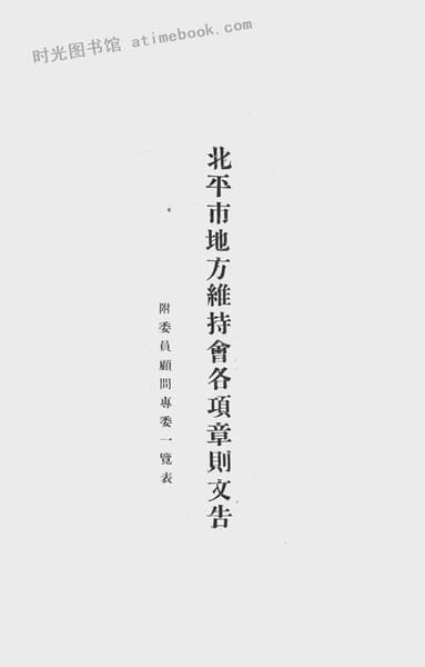 | 网盘路径:/时光图书馆珍藏系列/书籍文件/老图书/《北平市地方维持会各项章则文告》电子版合集.db | ||