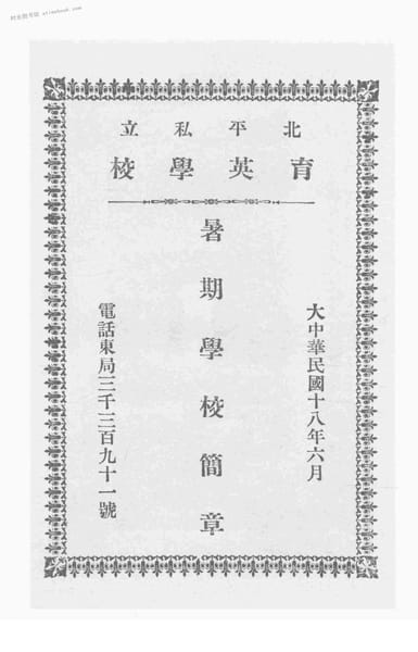| 网盘路径:/时光图书馆珍藏系列/书籍文件/老图书/《北平私立育英学校暑期学校简章》电子版合集.db | ||