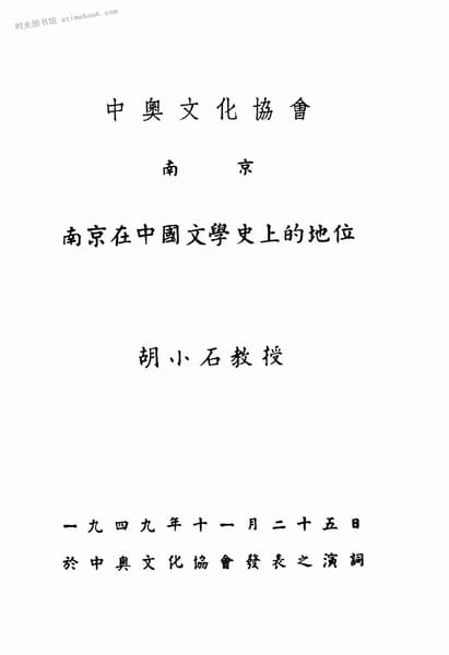 | 网盘路径:/时光图书馆珍藏系列/书籍文件/老图书/《南京在中国文学史上的地位》电子版合集.db | ||