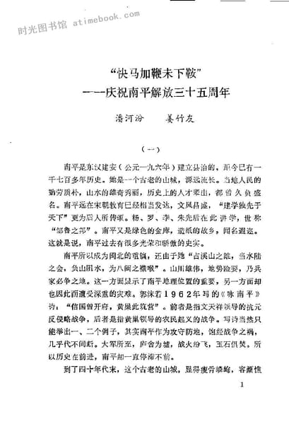 | 网盘路径:/时光图书馆珍藏系列/书籍文件/老图书/《南平卅五年_征文选辑》电子版合集.db | ||