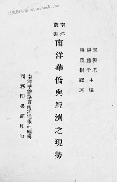 | 网盘路径:/时光图书馆珍藏系列/书籍文件/老图书/《南洋华侨与经济之现势》电子版合集.db | ||