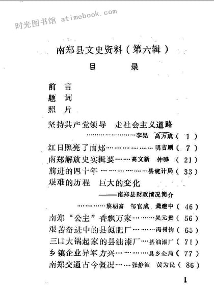 | 网盘路径:/时光图书馆珍藏系列/书籍文件/老图书/《南郑县文史资料_第6辑(纪念南郑县解放40周年专辑)》电子版合集.db | ||