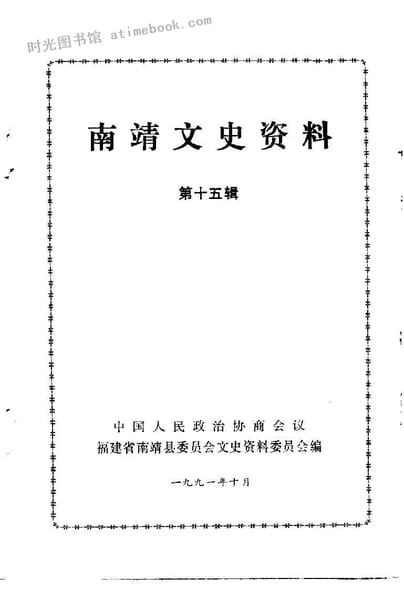 | 网盘路径:/时光图书馆珍藏系列/书籍文件/老图书/《南靖文史资料_第15辑》电子版合集.db | ||