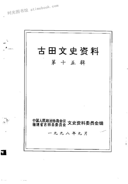 | 网盘路径:/时光图书馆珍藏系列/书籍文件/老图书/《古田文史资料_第15辑》电子版合集.db | ||