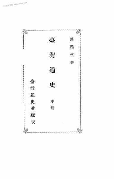 | 网盘路径:/时光图书馆珍藏系列/书籍文件/老图书/《台湾通史_中册》电子版合集.db | ||