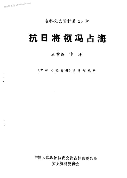 | 网盘路径:/时光图书馆珍藏系列/书籍文件/老图书/《吉林文史资料选辑_第25辑_抗日将领冯占海》电子版合集.db | ||