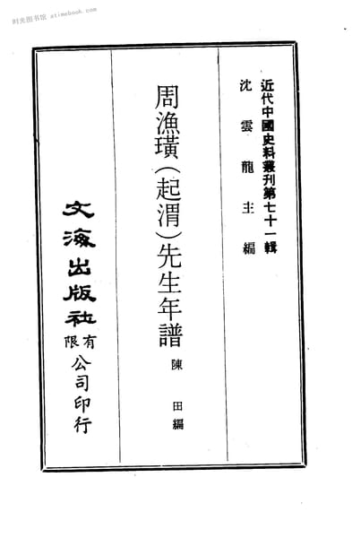| 网盘路径:/时光图书馆珍藏系列/书籍文件/老图书/《周渔璜(起渭)先生年谱》电子版合集.db | ||