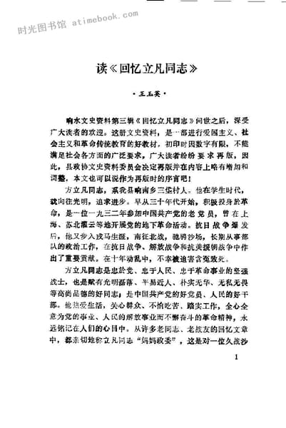 | 网盘路径:/时光图书馆珍藏系列/书籍文件/老图书/《响水文史资料_第3辑_回忆立凡同志》电子版合集.db | ||