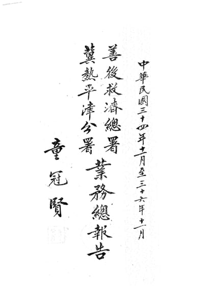 | 关键词:善后救济总署,冀热平津分署,业务总报告, | ||