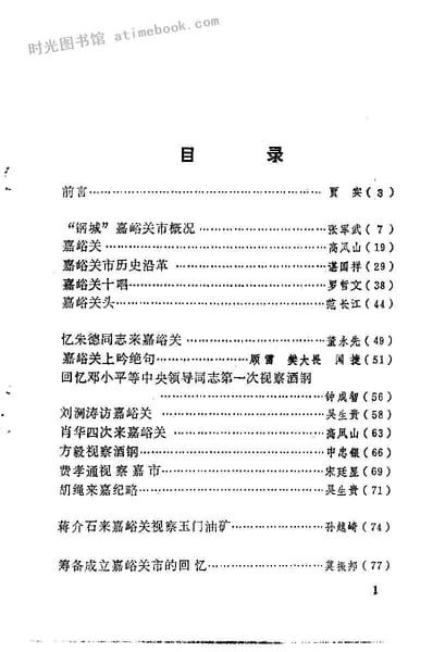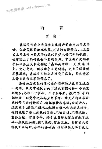 | 网盘路径:/时光图书馆珍藏系列/书籍文件/老图书/《嘉峪关文史资料_第1辑》电子版合集.db | ||