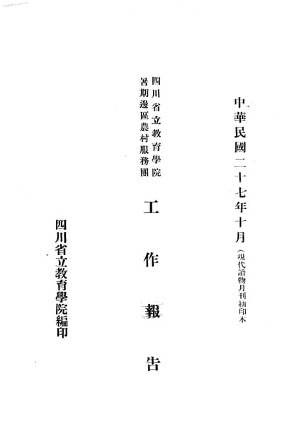 | 网盘路径:/时光图书馆珍藏系列/书籍文件/老图书/《四川省立教育学院暑期边区农村服务团_工作报告》电子版合集.db | ||