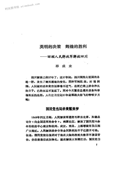 文件下载 名称:《回忆四川解放》电子版合集 关键词:四川解放,地方史志, 出版地区:四川成都 1988年11月 文件大小:117.56 MB 原始格式:db数据库 导出格式:png 下载方式:百度网盘、夸克网盘、阿里云盘、123云盘 网盘路径:/时光图书馆珍藏系列/书籍文件/老图书/《回忆四川解放》电子版合集.db 提示:也支持在线观看,安装阅读器即可,无需额外下载书籍文件。 下载地址: ★阅读器★ 百度网盘 阿里云盘 123云盘 夸克网盘 内容截图:(图片有压缩,使用阅读器观看更清晰) 书籍获取:书籍合集 喜欢 (0)