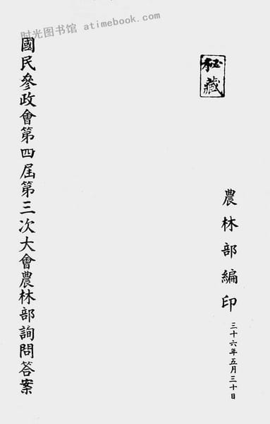 | 网盘路径:/时光图书馆珍藏系列/书籍文件/老图书/《国民参政会第四届第三次大会农林部询问答案》电子版合集.db | ||