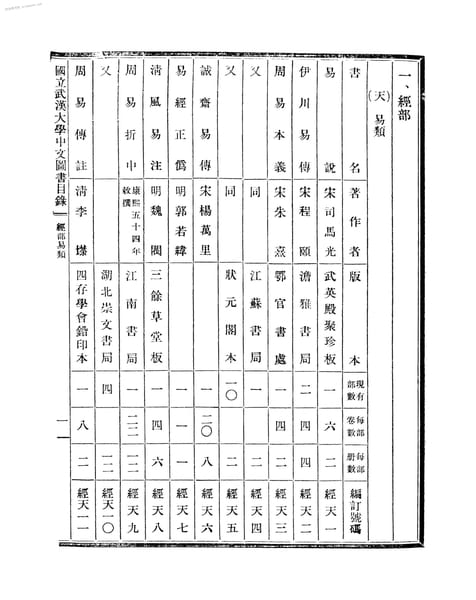 | 关键词:国立武汉大学,图书目录,经史, | ||