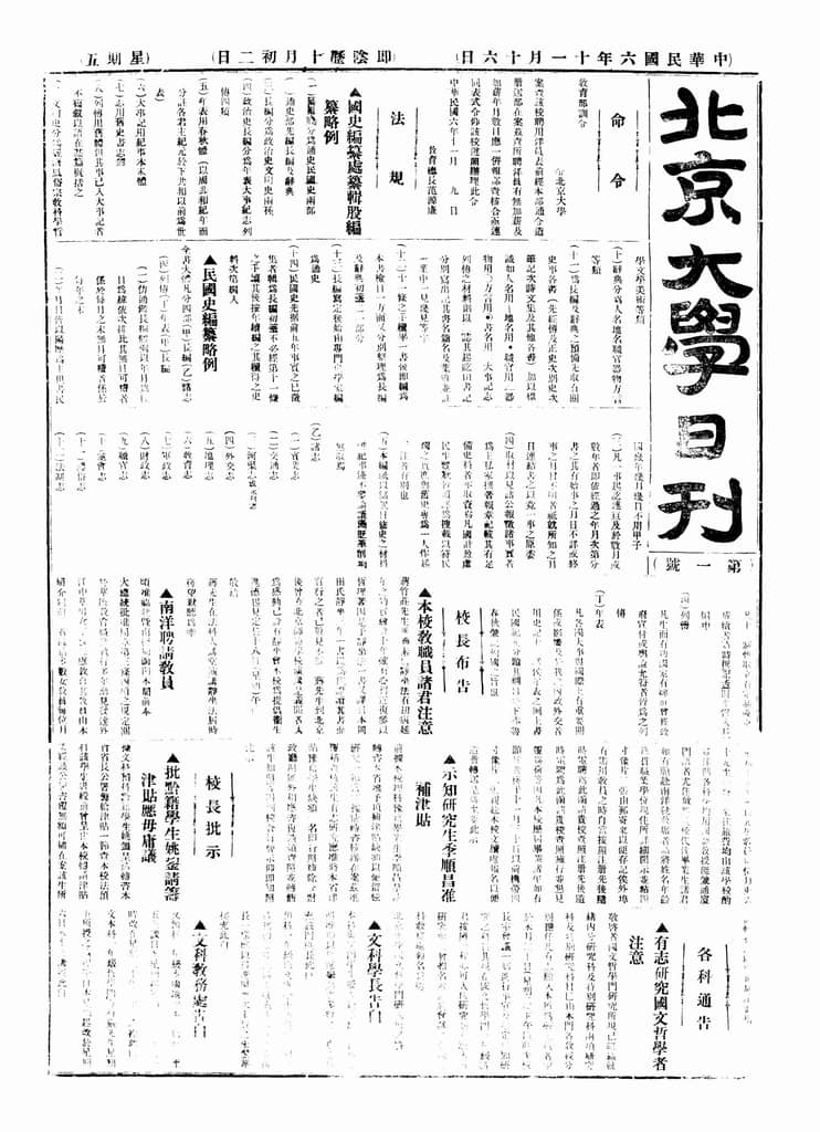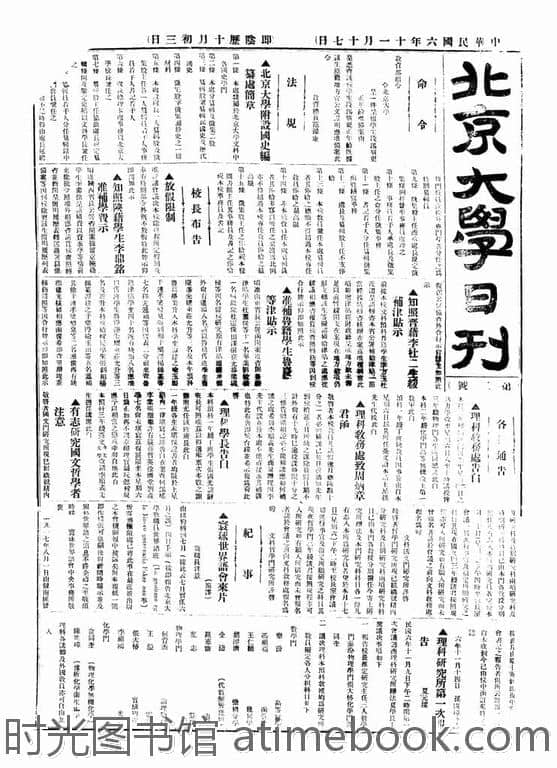 网盘路径:/时光图书馆珍藏系列/书籍文件/老杂志、老期刊/民国期刊/北京/《北京大学日刊》(北京)1917-1932年.db