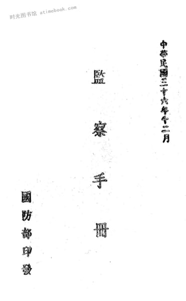 | 网盘路径:/时光图书馆珍藏系列/书籍文件/老图书/《国防部监察局监察手册》电子版合集.db | ||
