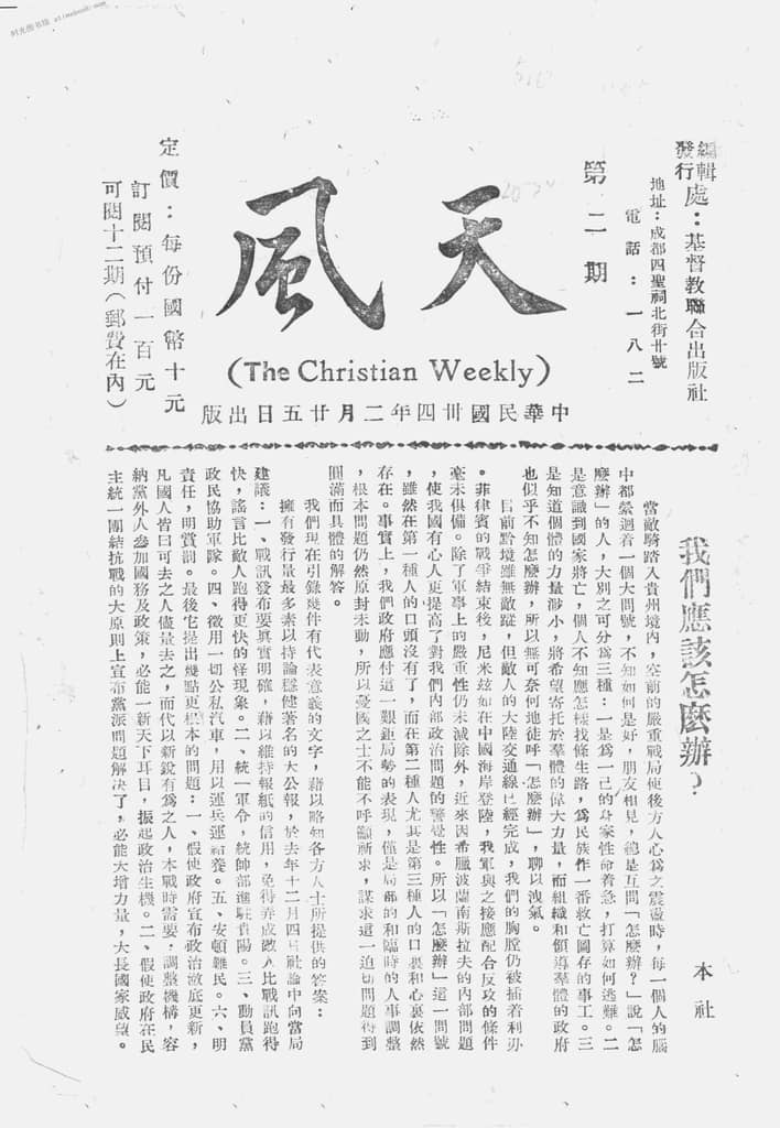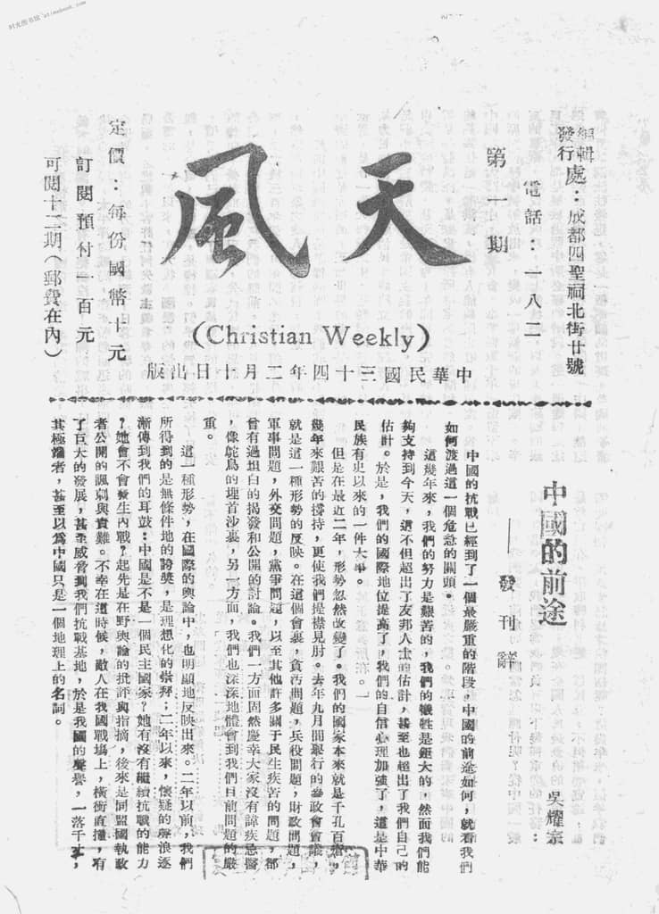 网盘路径:/时光图书馆珍藏系列/书籍文件/老杂志、老期刊/民国期刊/四川/《天风》(成都)1945-1955年.db