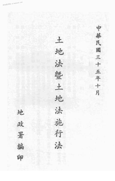 | 网盘路径:/时光图书馆珍藏系列/书籍文件/老图书/《土地法暨土地法施行法》电子版合集.db | ||