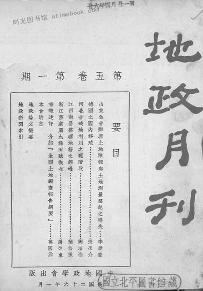 | 网盘路径:/时光图书馆珍藏系列/书籍文件/老图书/《地政月刊第五卷第一期》电子版合集.db | ||