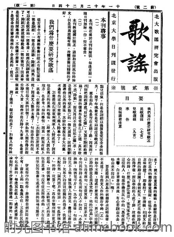 网盘路径:/时光图书馆珍藏系列/书籍文件/老杂志、老期刊/民国期刊/北京/《歌谣周刊》(北京)1922-1937年.db