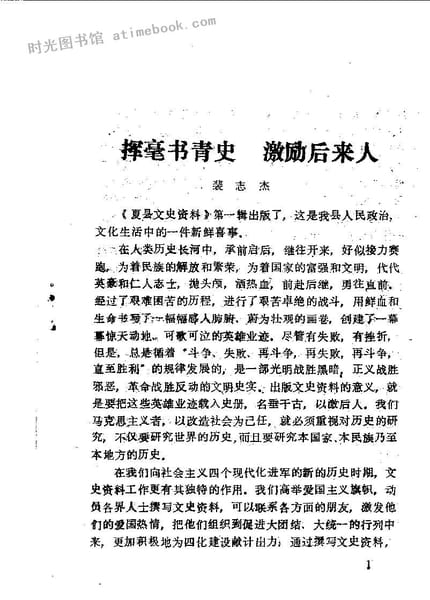 | 网盘路径:/时光图书馆珍藏系列/书籍文件/老图书/《夏县文史资料_第1辑》电子版合集.db | ||