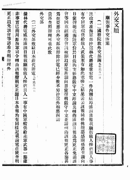 | 网盘路径:/时光图书馆珍藏系列/书籍文件/老图书/《外交文牍(庙街事件交涉案)》电子版合集.db | ||