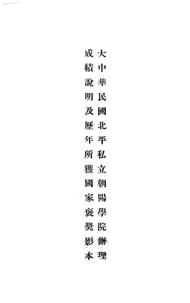 | 网盘路径:/时光图书馆珍藏系列/书籍文件/老图书/《大中华民国北平私立朝阳学院办理成绩说明及历年所获国家褒奖影本》电子版合集.db | ||
