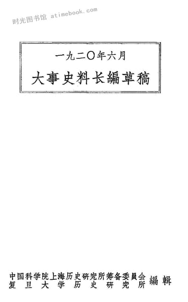 | 网盘路径:/时光图书馆珍藏系列/书籍文件/老图书/《大事史料长编草稿(一九二〇年六月)》电子版合集.db | ||