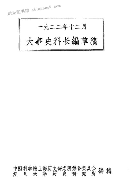 | 网盘路径:/时光图书馆珍藏系列/书籍文件/老图书/《大事史料长编草稿(一九二二年十二月)》电子版合集.db | ||