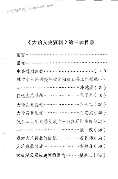 | 网盘路径:/时光图书馆珍藏系列/书籍文件/老图书/《大冶文史资料_第3辑_大冶兵暴专辑》电子版合集.db | ||