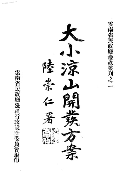 | 网盘路径:/时光图书馆珍藏系列/书籍文件/老图书/《大小凉山开发方案》电子版合集.db | ||