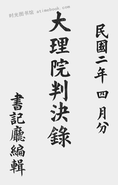 | 网盘路径:/时光图书馆珍藏系列/书籍文件/老图书/《大理院判决录(民国二年四月份)》电子版合集.db | ||